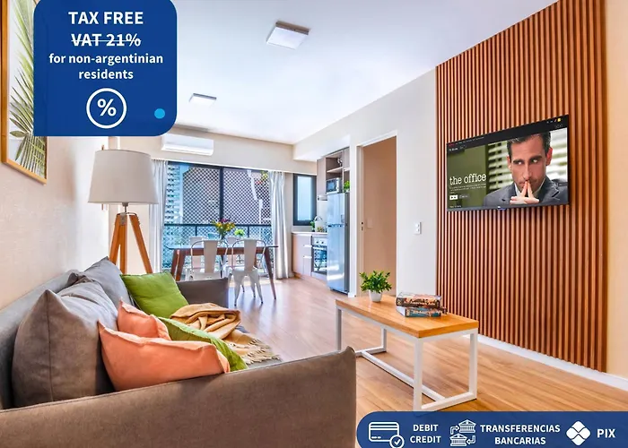 The apartment comes with tea and coffee making equipment and a kitchen featuring a microwave, a fridge, and glassware. Jorge Newbery airport is located 10 km from Modern Apartments In Palermo, while Bulnes tube station can be reached in just 5 minutes on foot. The property offers a solarium for relaxation and refreshment.
